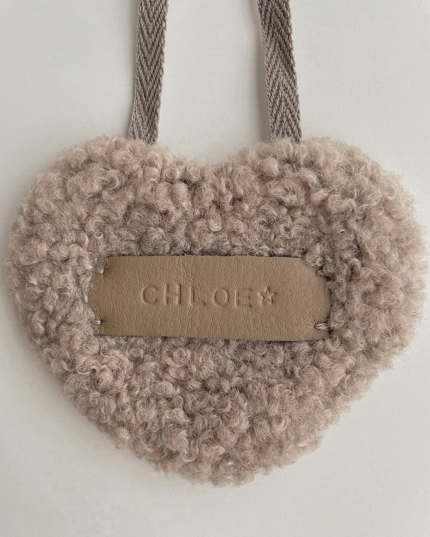 ボア生地を使用した名入れハート型スタイです♥︎